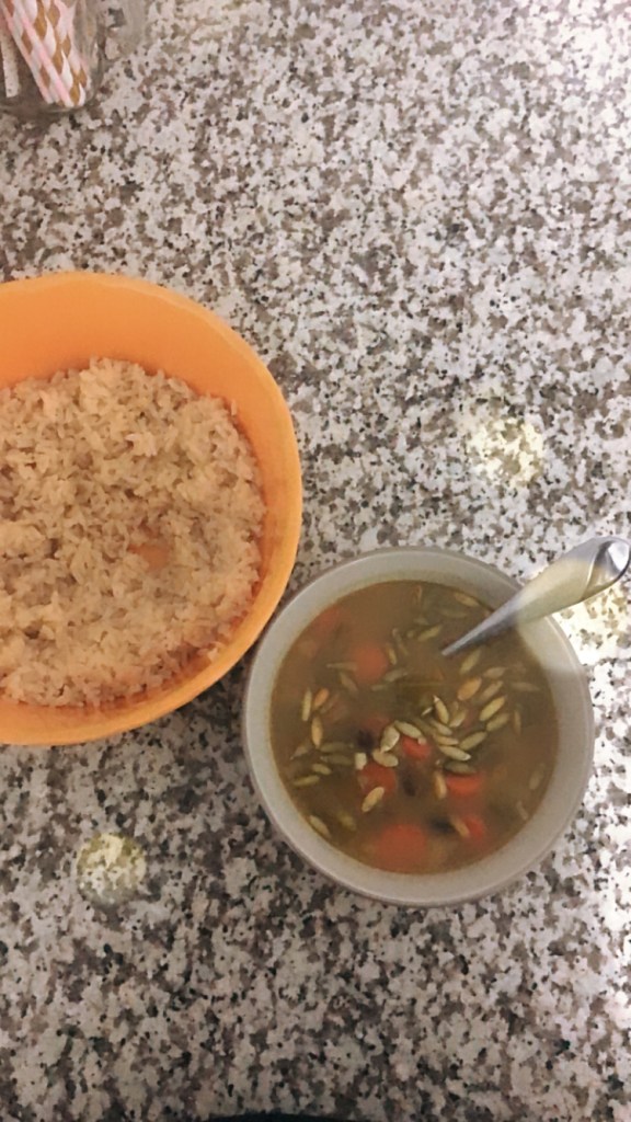 Hey there moms/moms to be! So I would first like to chat about how when you’re saving for parenting (or just in general), you need to watch how often you eat out, get takeout, and hit the grocery store. That being said, I tried to make dinner based on whatever I had in my pantry. I am also trying to make sure I am eating healthy, natural foods with protein. Which brought on Butternut Squash Soup, made from Trader Joes stock, black beans, carrots, apples, celery, garlic, and coconut milk. As delicious as that all may have sounded…sadly that wasn’t so much the case.